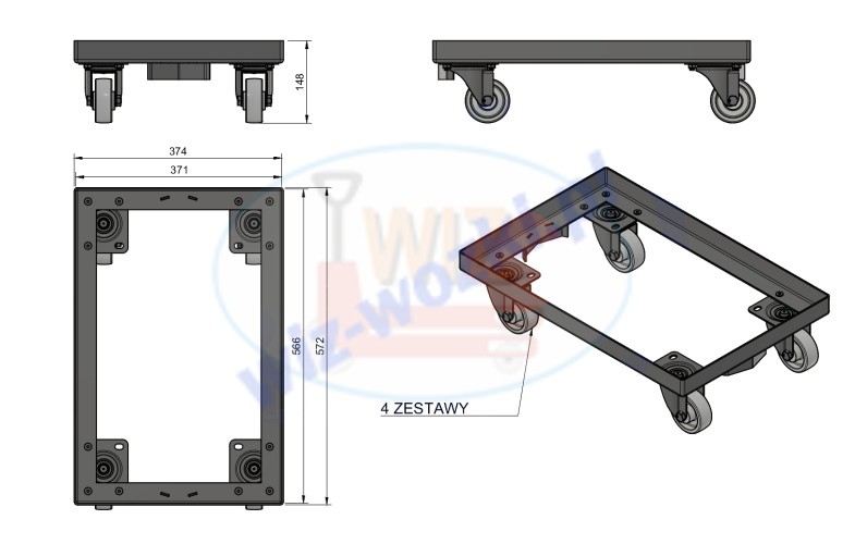Wózek ramowy pod skrzynki, pojemniki z tworzywa - WT-365x560 3PP9